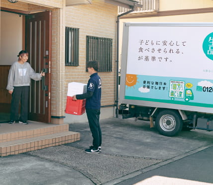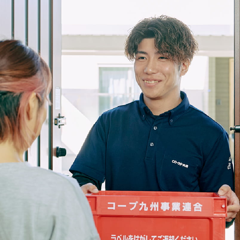 生協コープかごしまの個別配達は、組合員さんのもとへ毎週決まった曜日に注文した商品をご自宅にお届けするサービスです。食料品はもちろん、日用品や雑貨、ベビー・キッズ用品まで約3,000品目を取り揃えており、鹿児島では毎週7.5万人の組合員さんにご利用いただいています。
