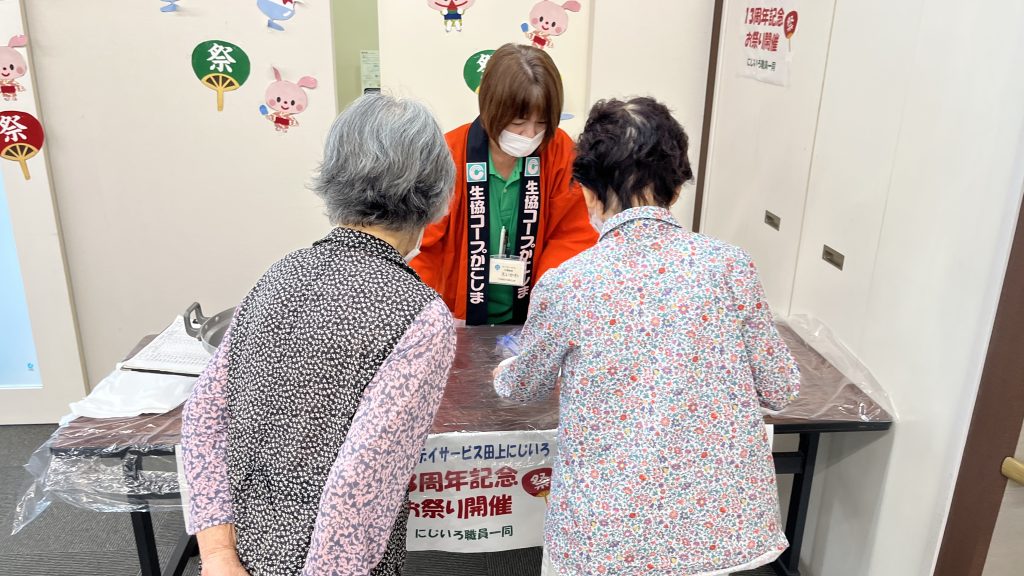 コープデイサービス田上にじいろの13周年記念のお祭りが開かれました。