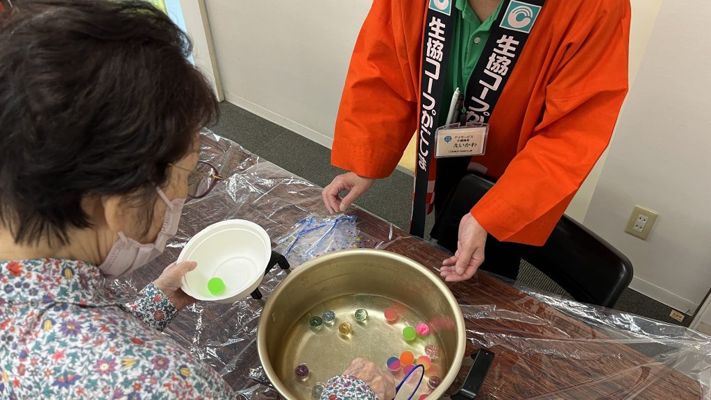 演奏後はヨーヨー釣りやスーパーボールすくいなど、室内ではありますがお祭りの雰囲気を楽しんでいただきました。