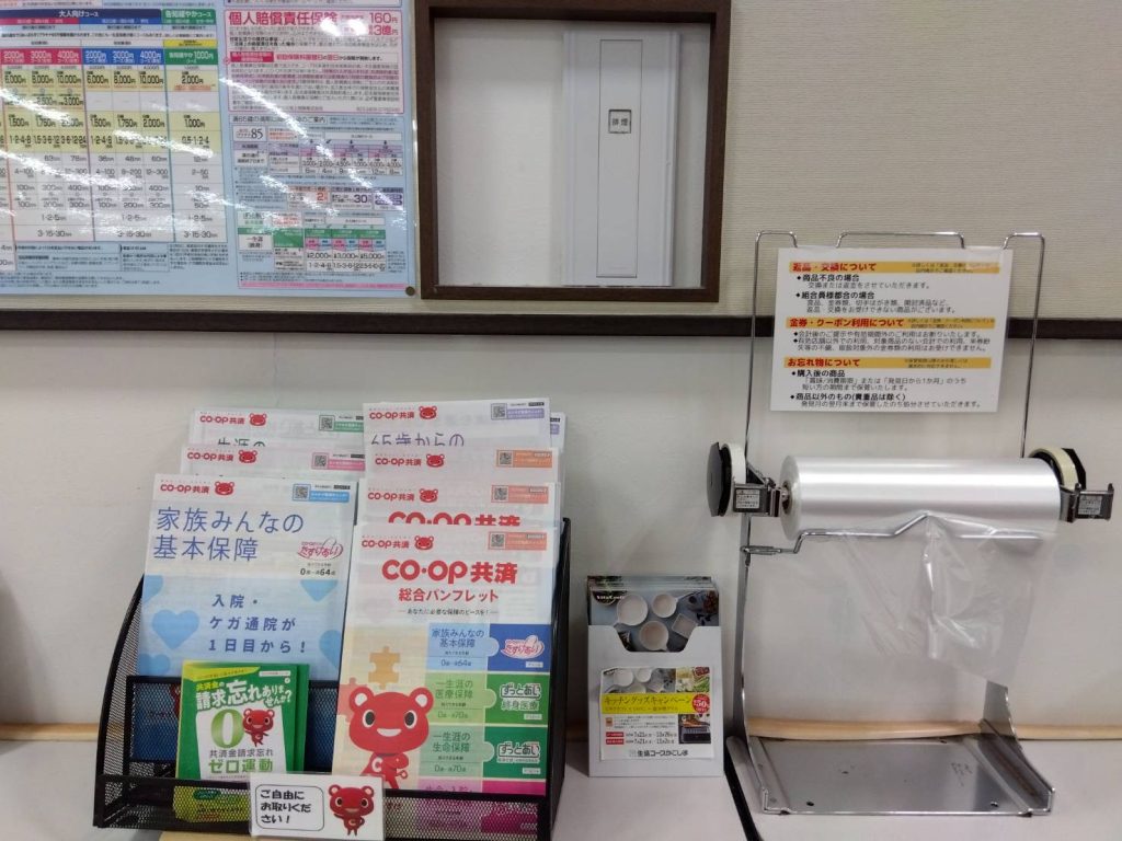 コープ吉野店では、掲示板にコープ共済のお知らせをはじめ、