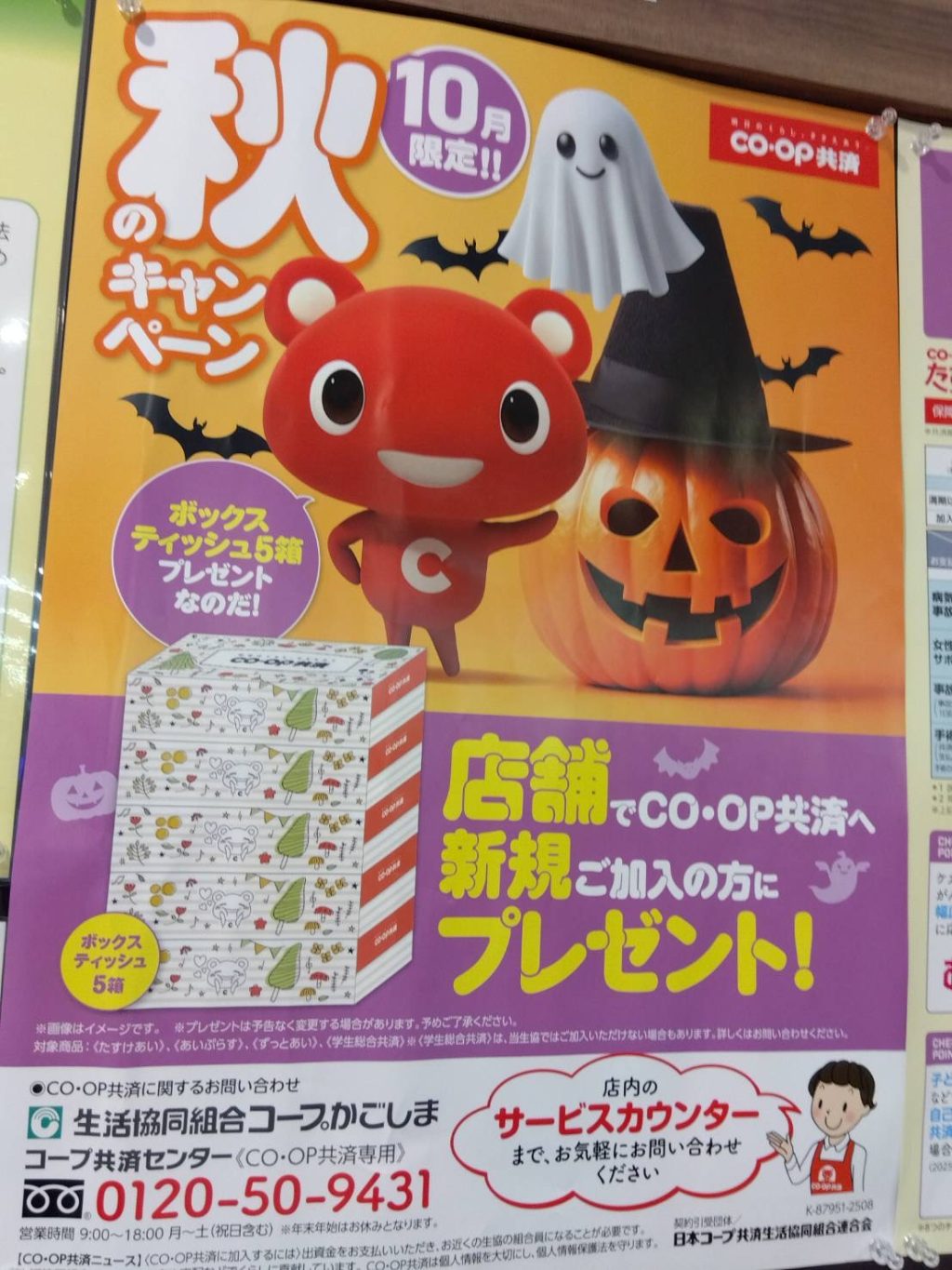 お菓子コーナーやコープ共済のポスターが、ハロウィン🎃👻仕様になっていました😊