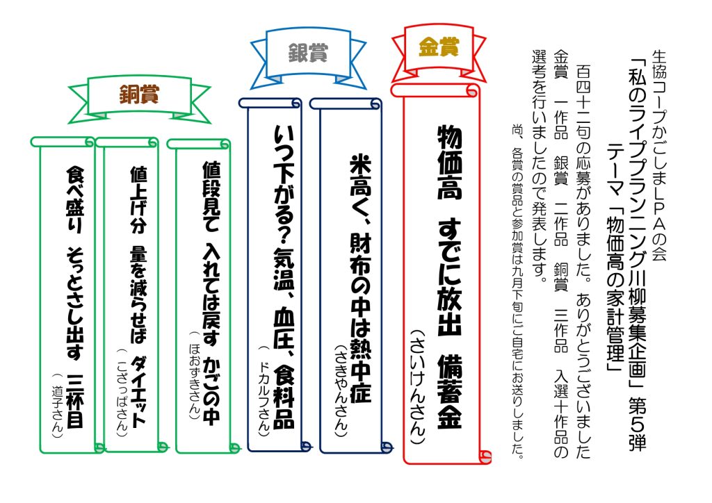 生協コープかごしまLPAの会が実施した「私のライフプランニング川柳」企画では、組合員のみなさんから142通の句を寄せていただきました。