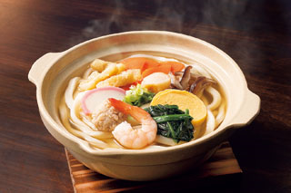 たっぷり入った ごちそう鍋焼きうどん🍲🦐