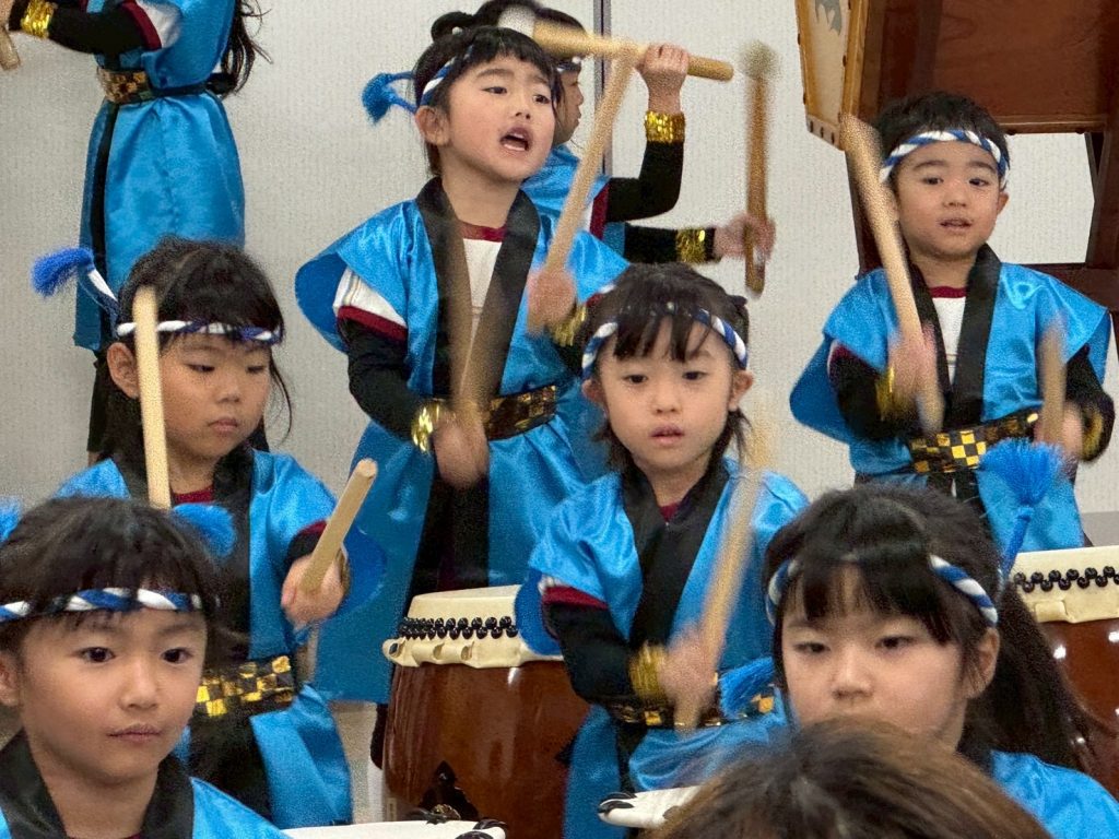 当日はあいにくの天気となりましたが、店内の組合員集会室では開会のセレモニーとして、地元の認定こども園はなぞのの園児たちによる和太鼓演奏が行われました。