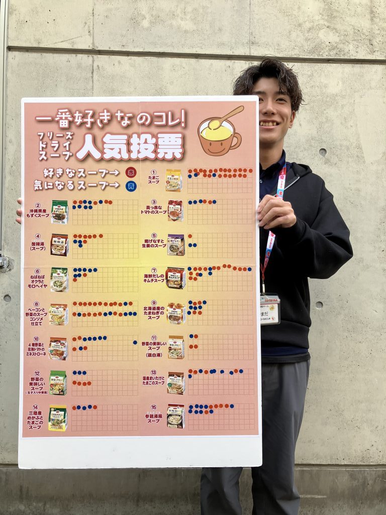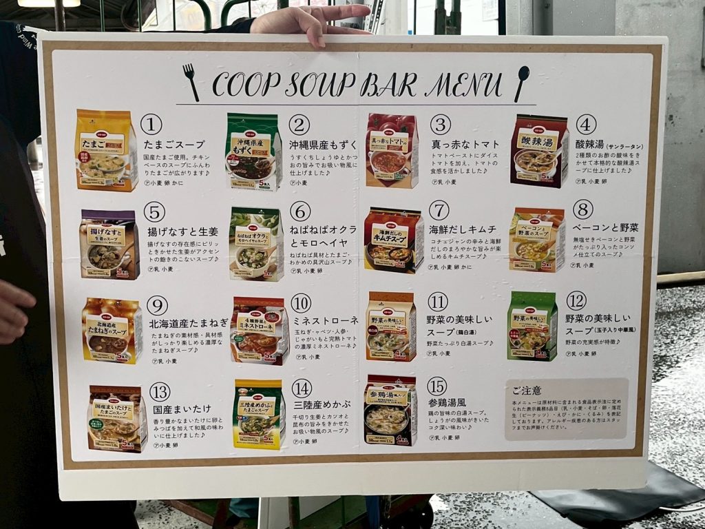 無店舗事業本部が出展した「COOP SOUP BAR」では、コープのフリーズドライスープ商品を全17種類ご用意し、無料で来場者に振る舞いました。同時に商品の人気投票が行われましたので、その結果もご紹介します。