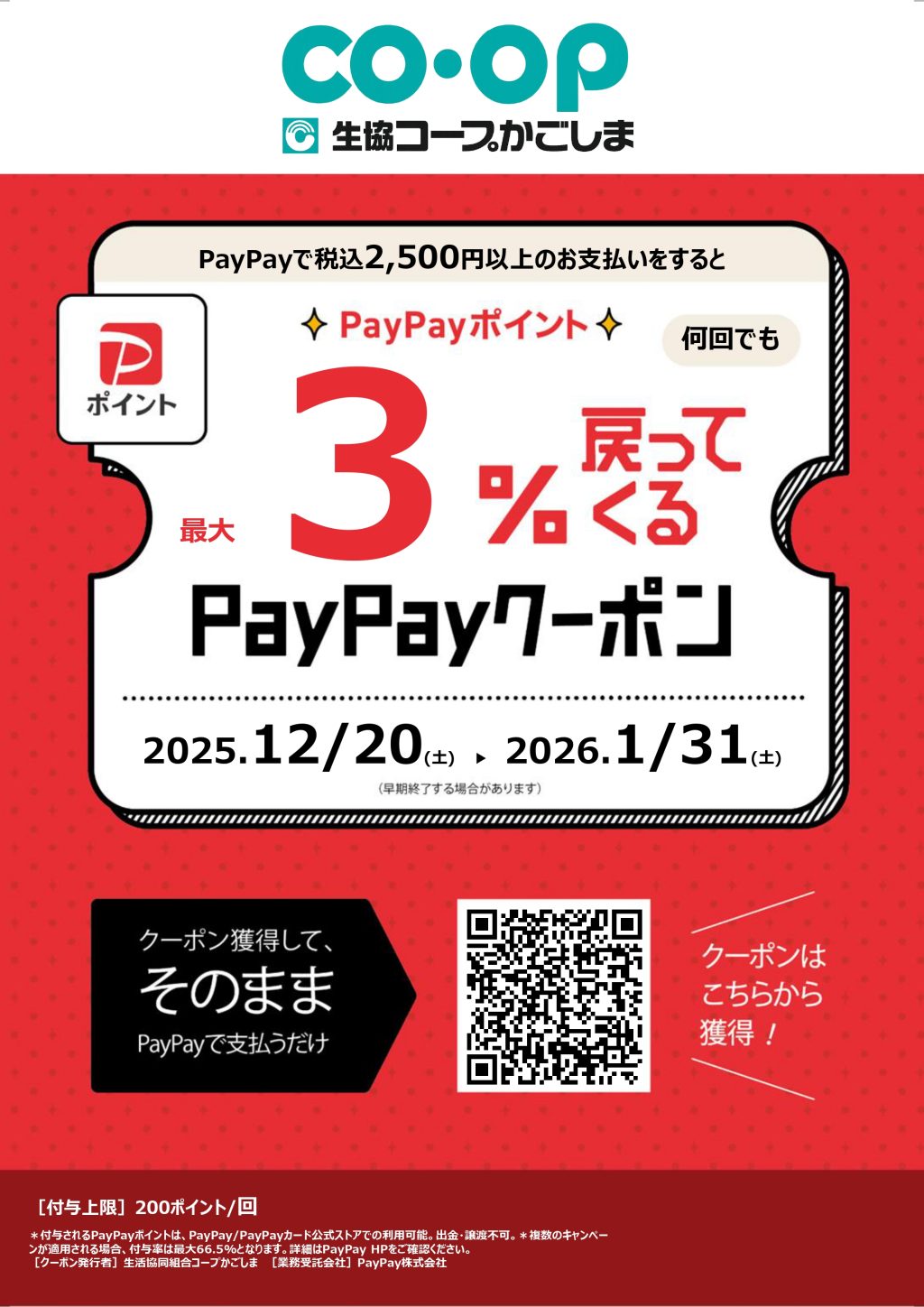 <コープのお店>12月20日(土)からPayPayクーポンがスタートします