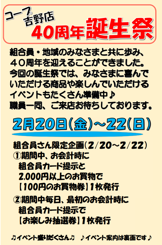 コープ吉野店は今年で40周年を迎えます✨