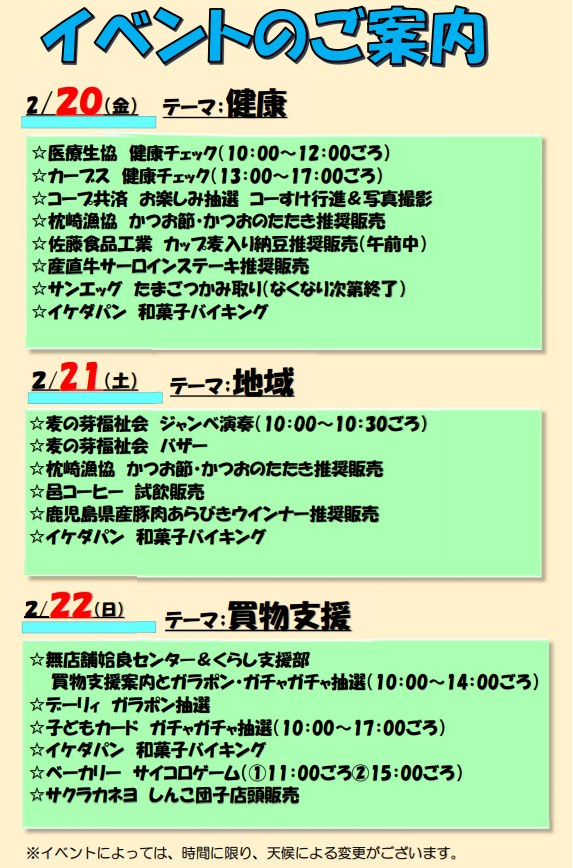 期間中はお買い得商品のご案内と合わせて、日替わりで楽しいイベントも開催‼