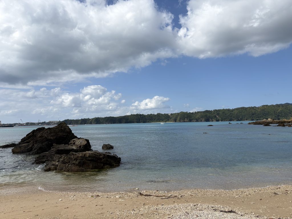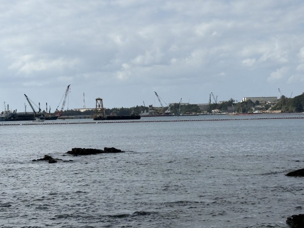 ▲辺野古で。美しい海が広がっている一方で、基地の工事が進んでいる現状がありました。