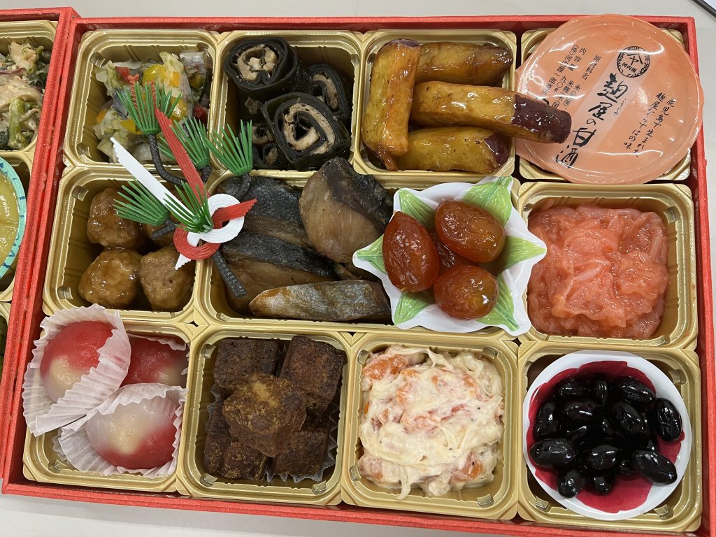 その後、今年度予定している各おせちの改善点などについて、明和食品さんからお話をいただいたあと、実際に試食を行いました。