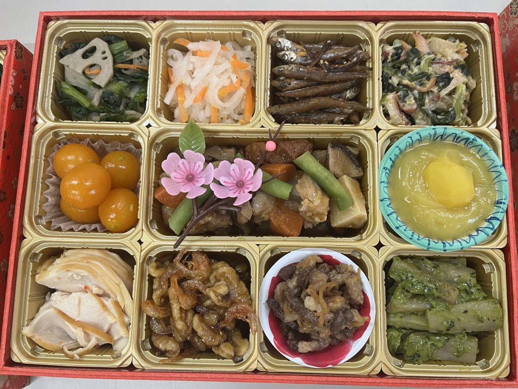 毎年好評のコープのおせち。新しい年のはじまりにふさわしい、縁起物や開発に携わったみなさんの想いがたくさん詰まった唯一無二の商品です。そんなコープのおせちの商品開発には、組合員の声が生かされています。具材や味付け、盛り付けなどメーカーと話し合い、試食をし、意見を出し合いながら作っています。
