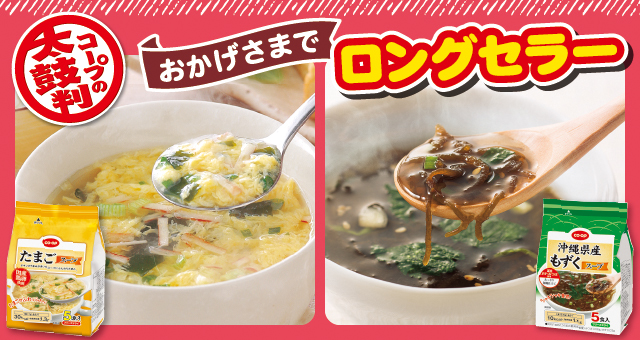 コープの太鼓判は『たまごスープ』『沖縄産もずくスープ』