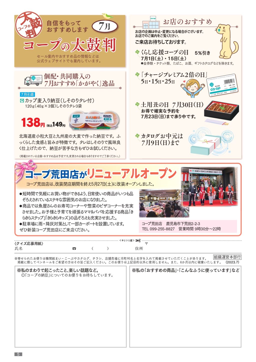 生協コープかごしまの機関紙「まい・こーぷ」2023年7月号です。