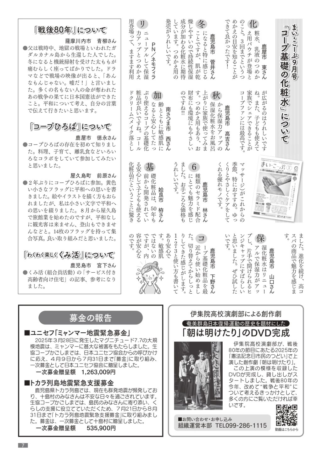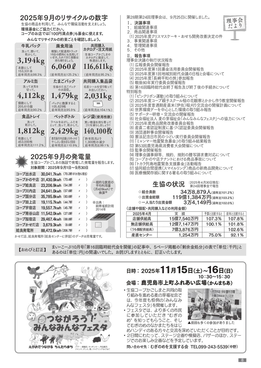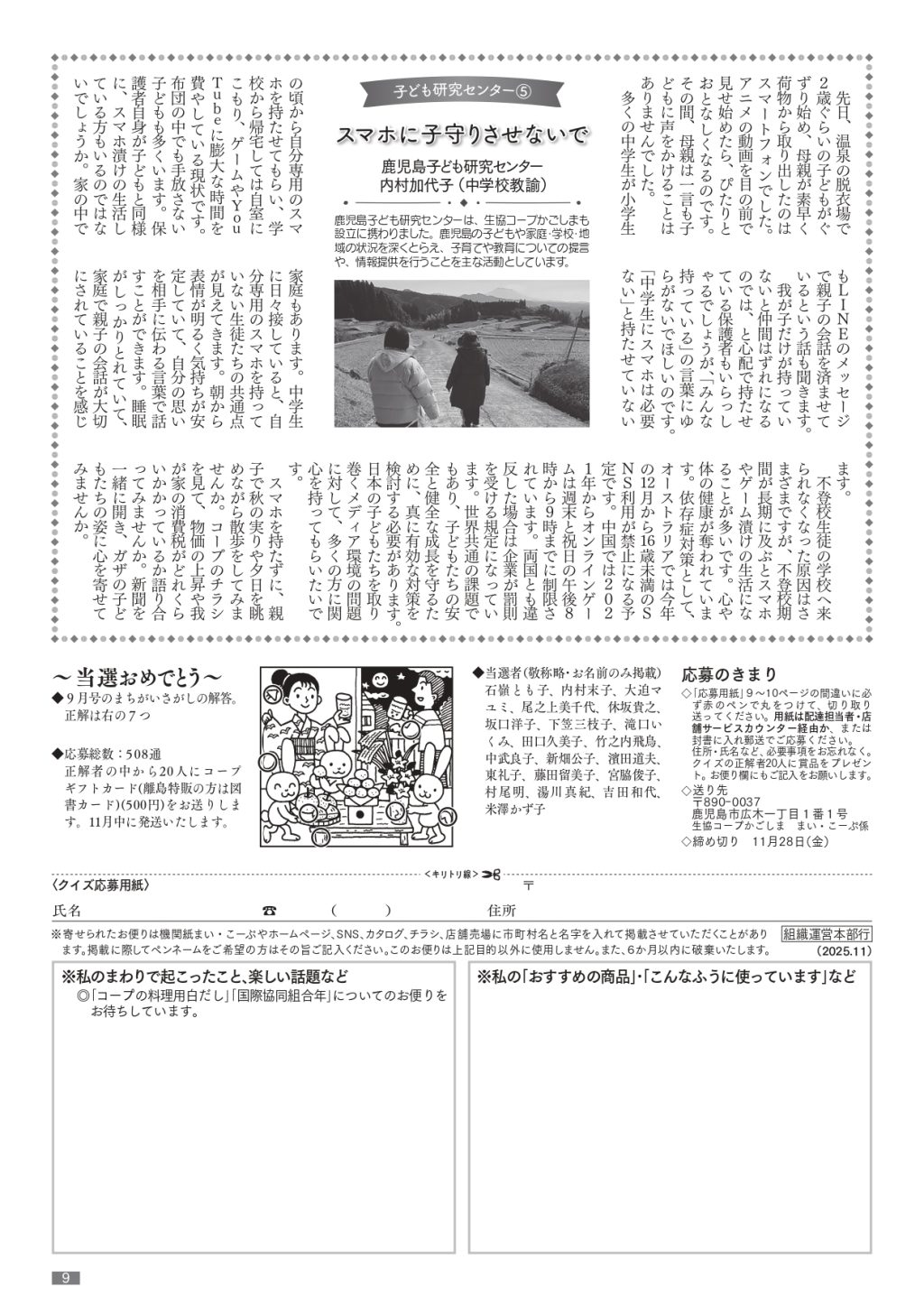 生協コープかごしまの機関紙「まい・こーぷ」2025年10月号です。