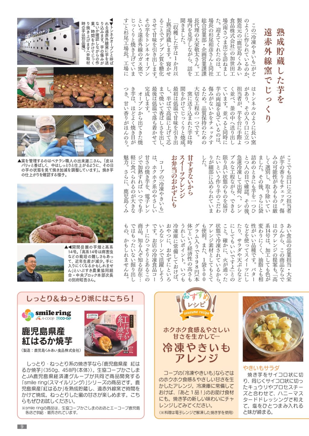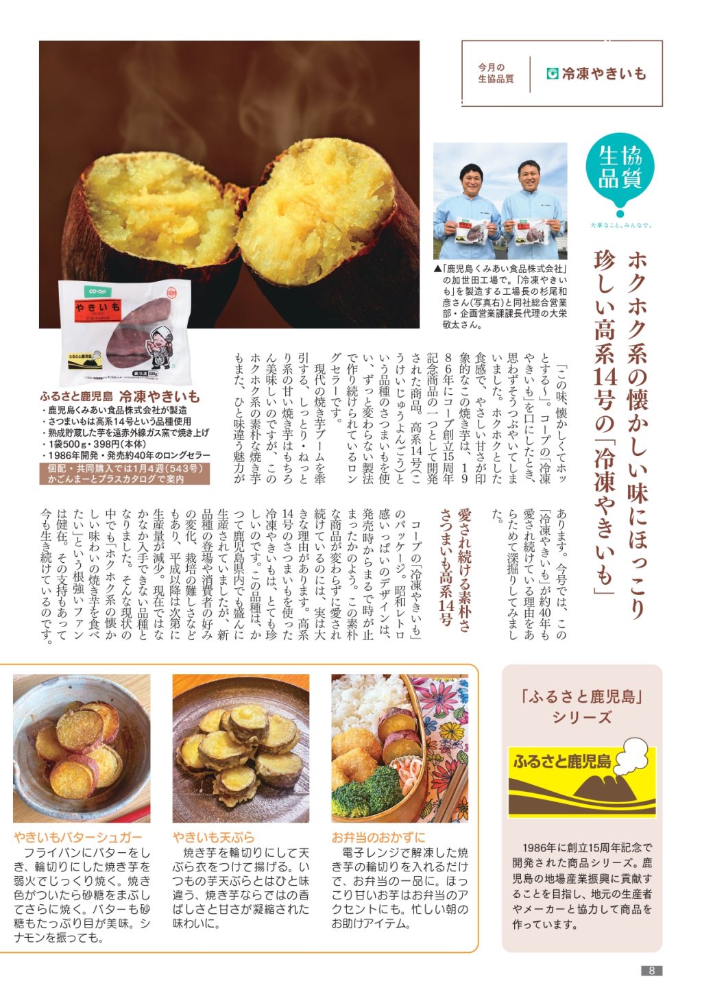 今回の生協品質は8ページ・9ページに、生協コープかごしまのオリジナル商品「冷凍やきいも」を掲載しています。発売から今年で40年を迎える商品です。