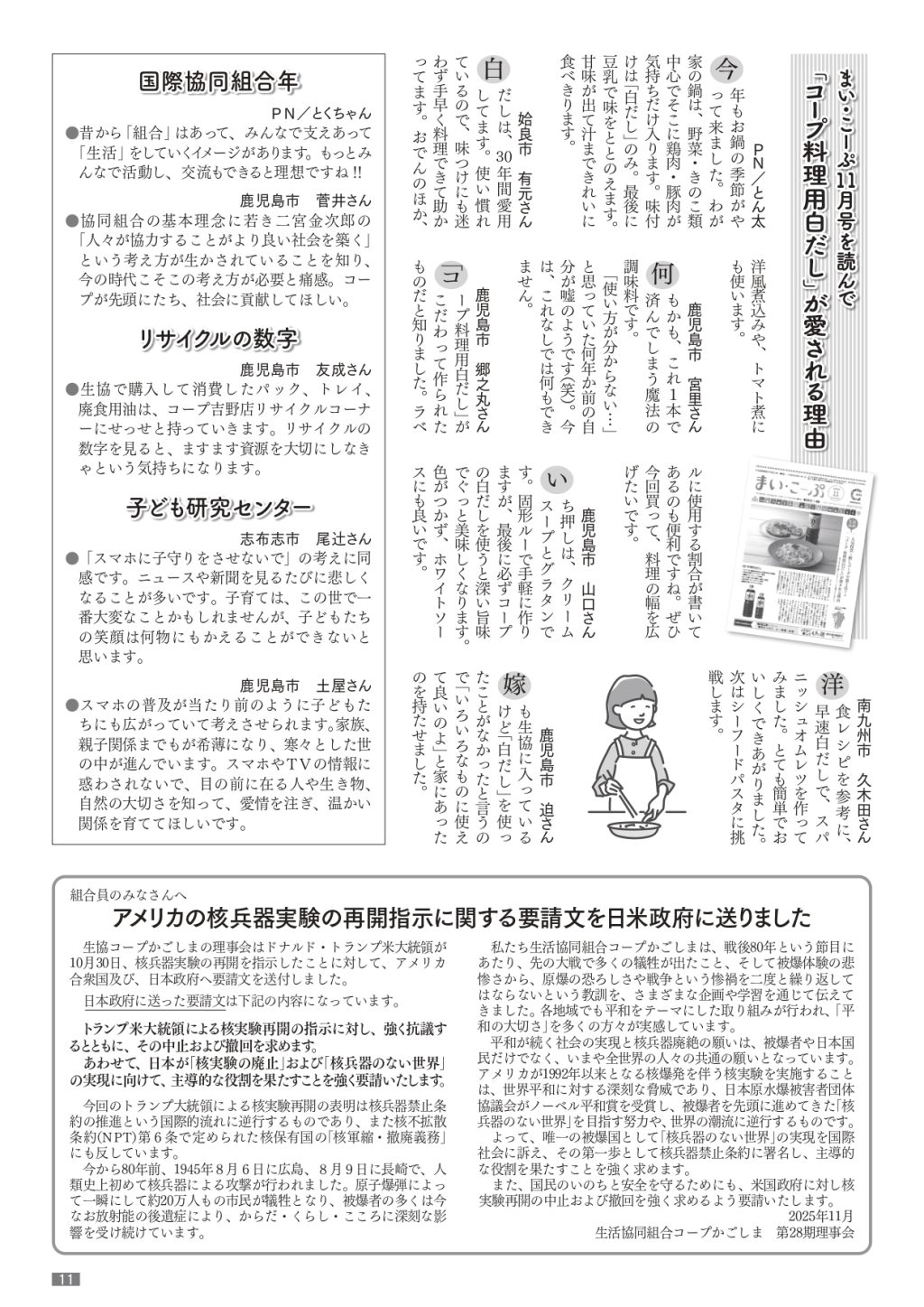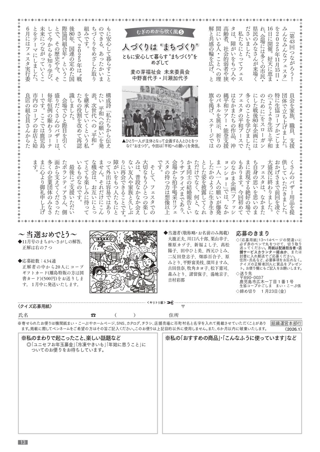 生協コープかごしまの機関紙「まい・こーぷ」2026年1月号です。
