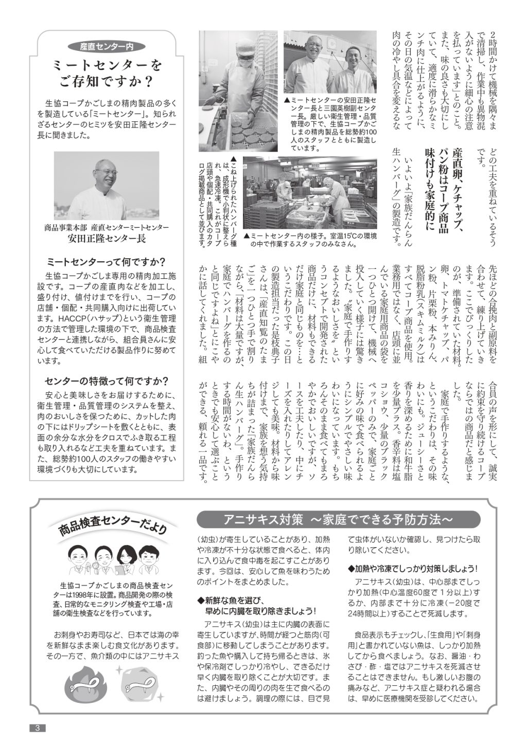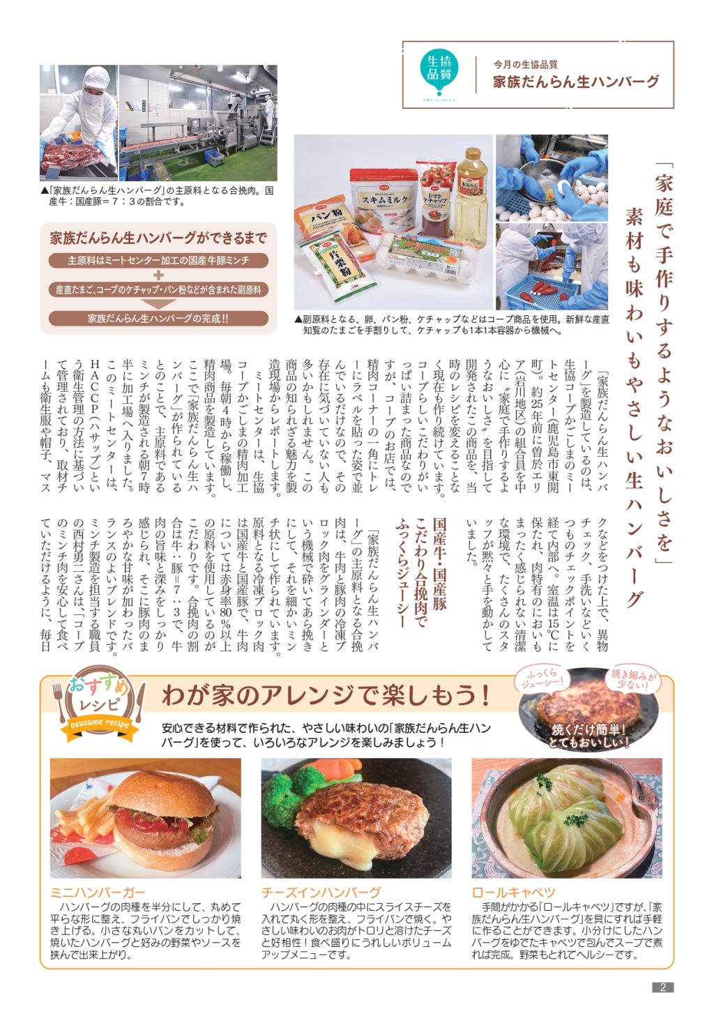今回の生協品質では、コープかごしま産直センターで製造されている「家族だんらん生ハンバーグ」を取り上げています。組合員も開発に参加し、作られた商品です。