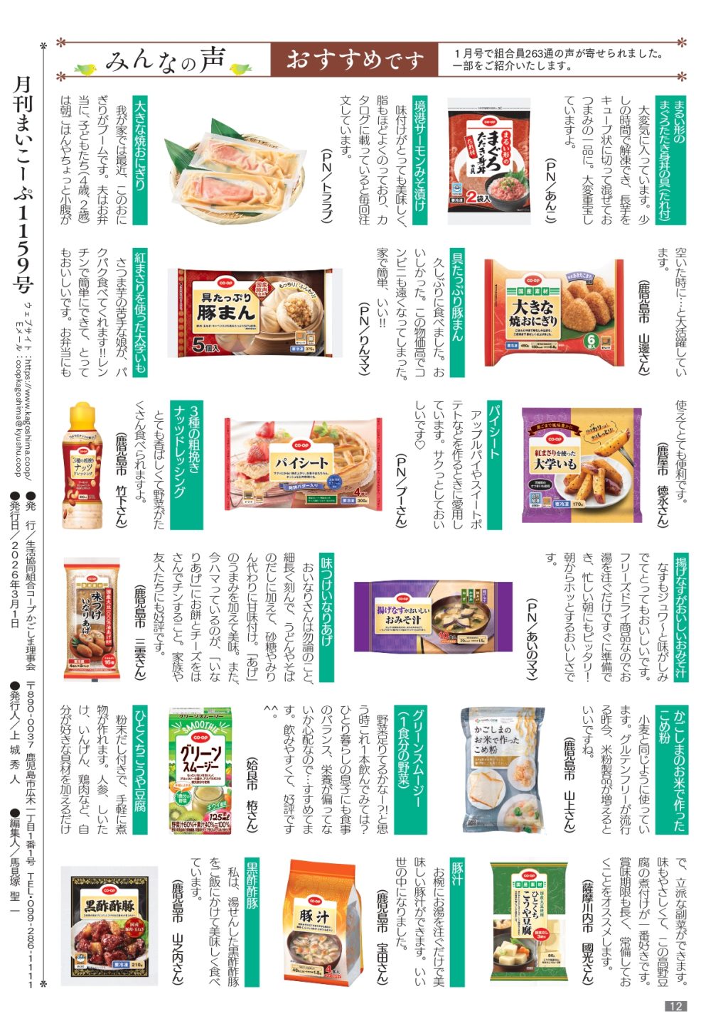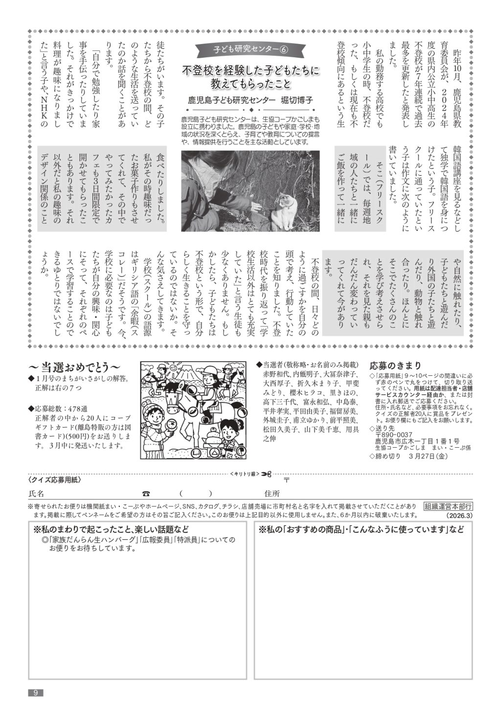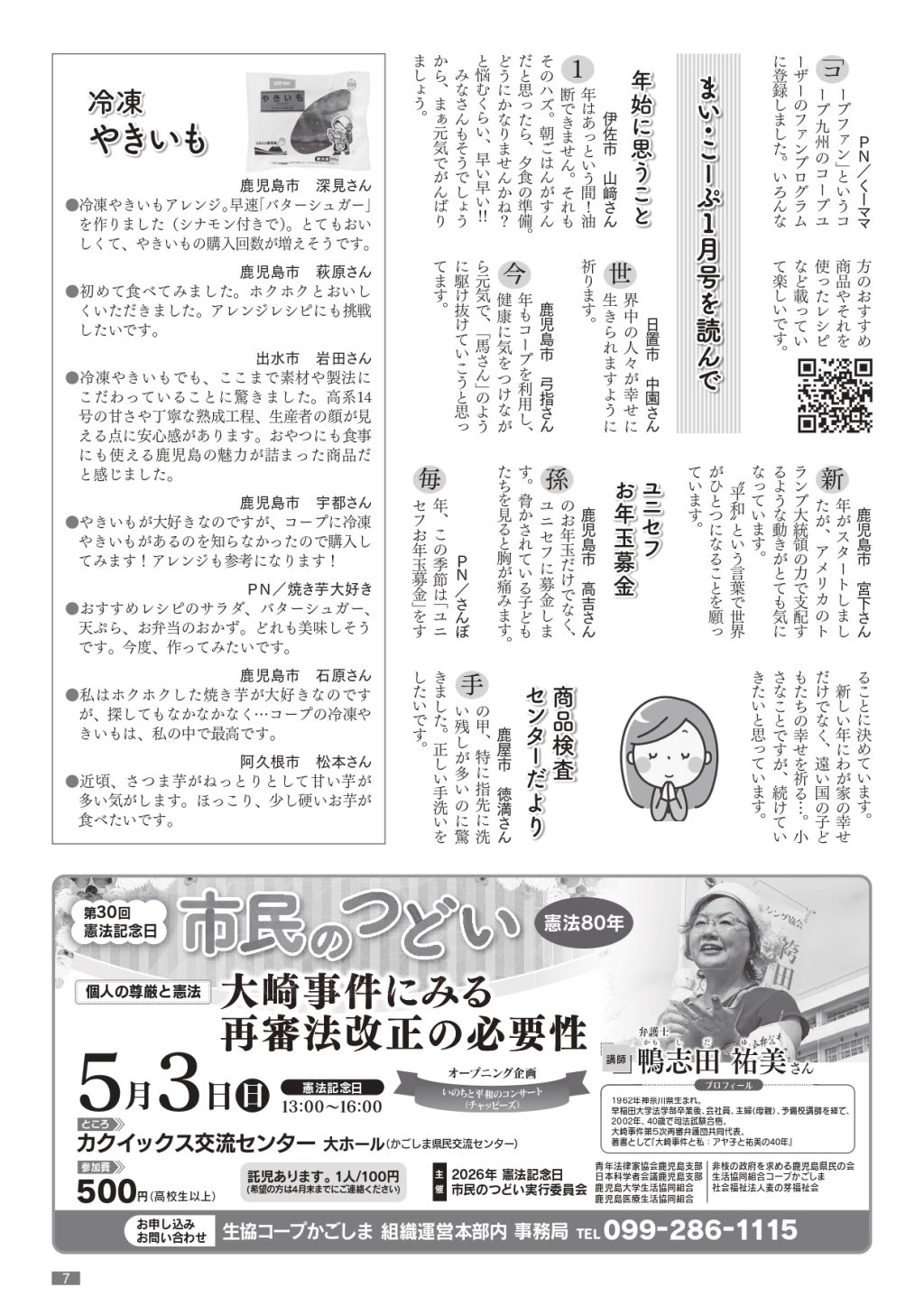生協コープかごしまの機関紙「まい・こーぷ」2026年3月号です。