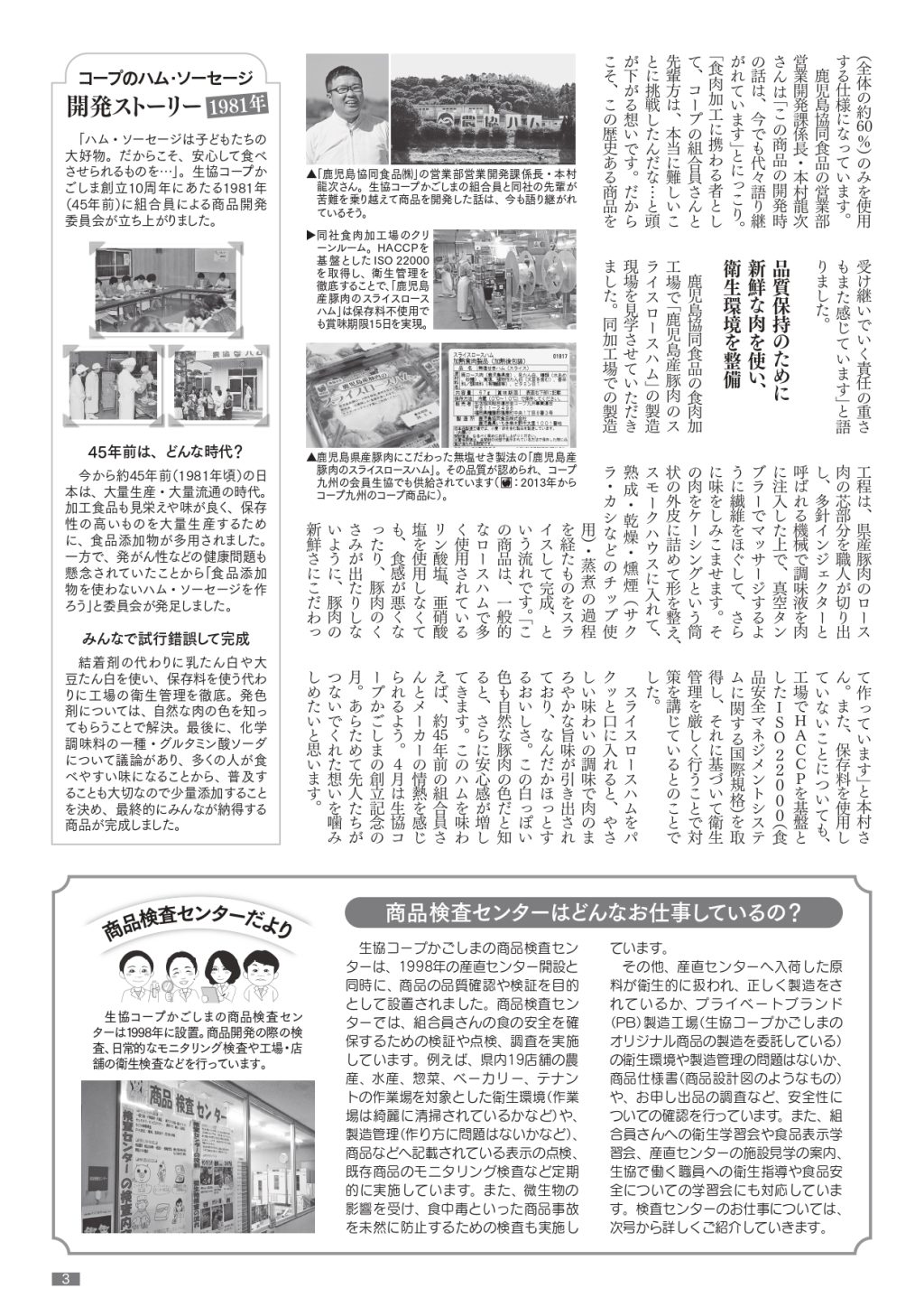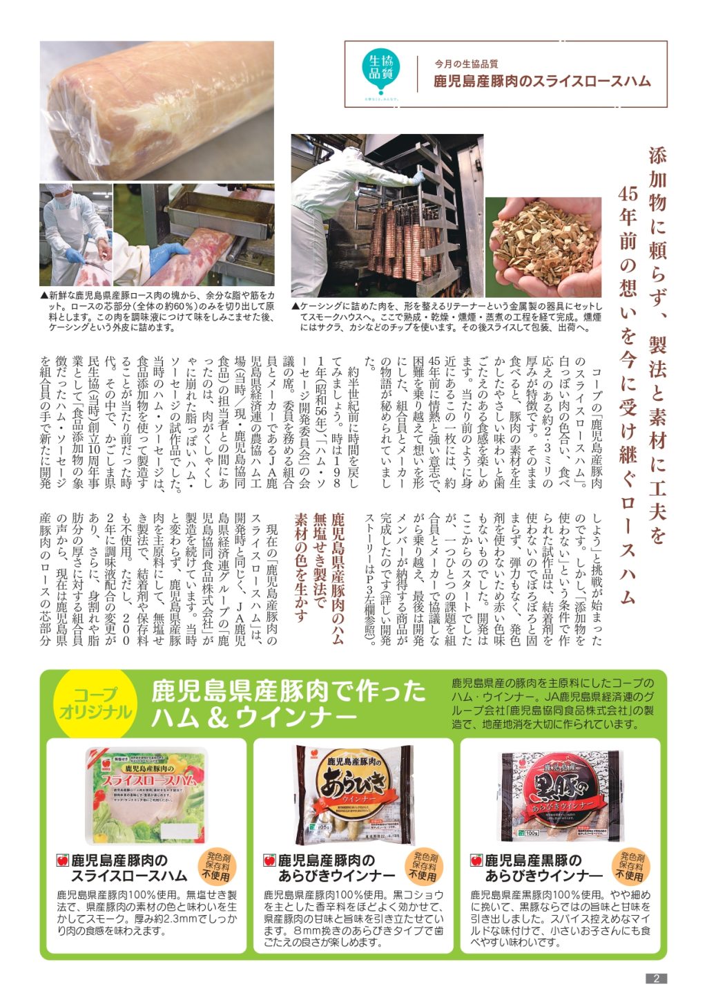 今回の生協品質では、生協コープかごしま創立10周年を機に開発・発売され、その後九州各県の生協でも取り扱いが始まった「鹿児島産豚肉のスライスロースハム」を取り上げています。