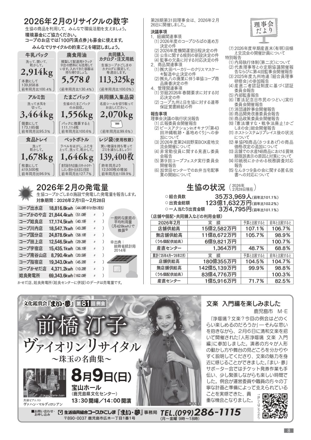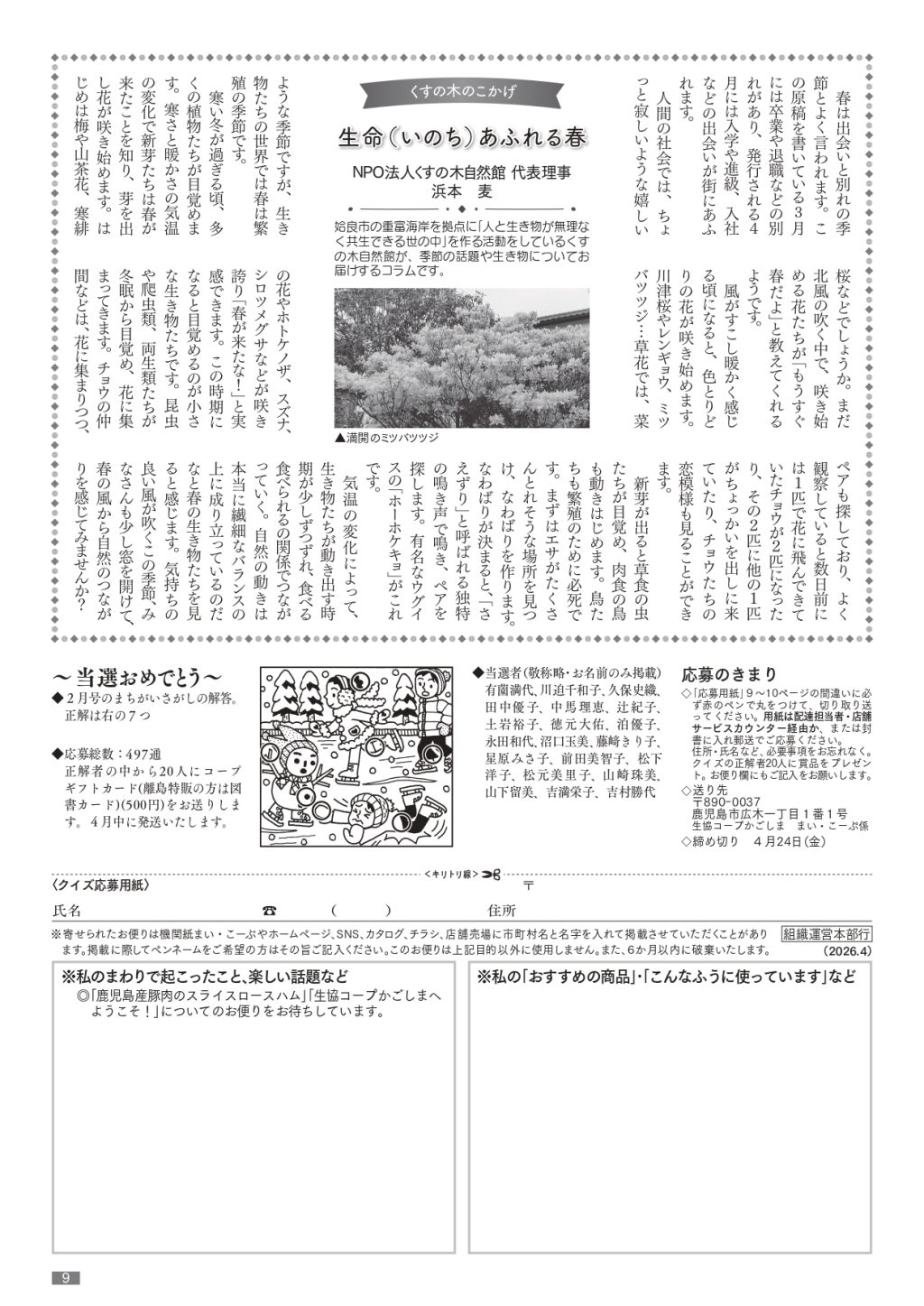 生協コープかごしまの機関紙「まい・こーぷ」2026年4月号です。
