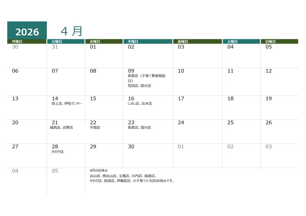 お出かけの前にカレンダーをチェックしてくださいね👀
