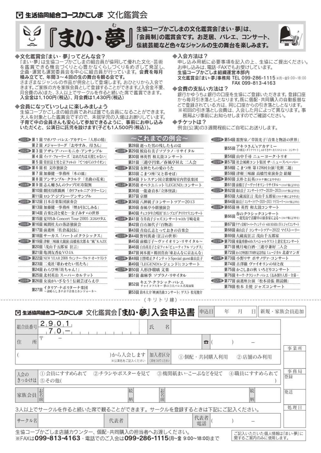 生協コープかごしま組織運営本部 『まい・夢』事務局係電話:099-286-1115 ※月曜日〜金曜日の9時〜18時の間にお電話ください