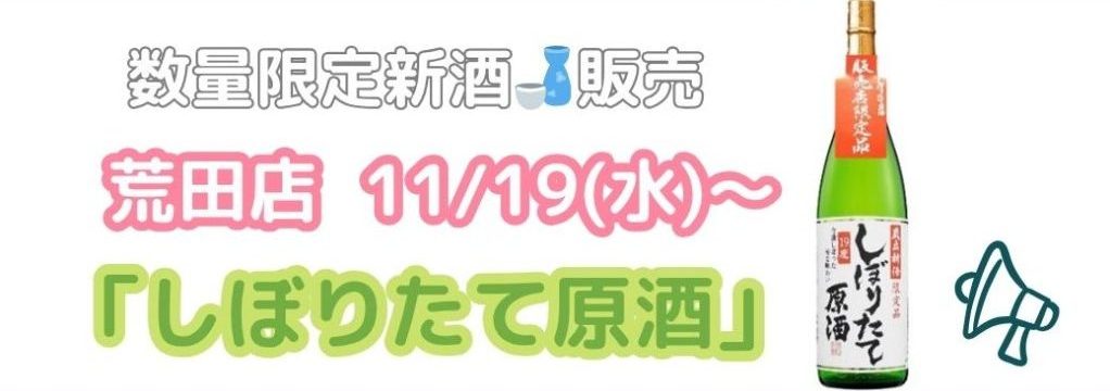 荒田店では11月19日(水)から数量限定商品の蔵出し新酒「しぼりたて原酒」が発売されます。