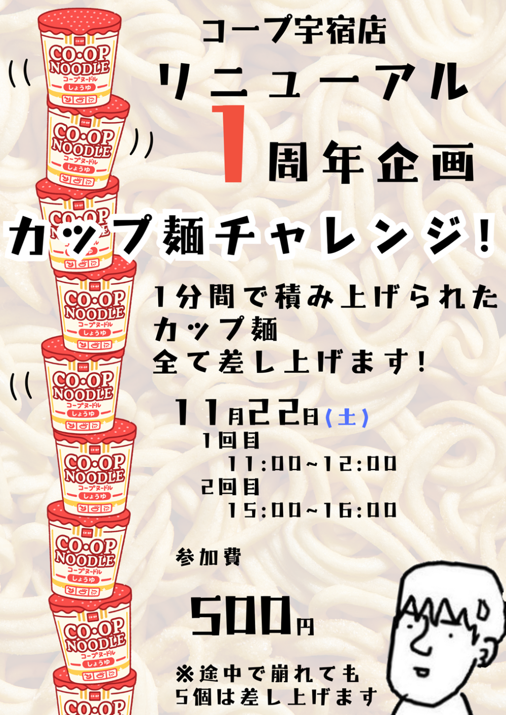 22日(土)はカップ麺の積み上げイベントもありますよ😊