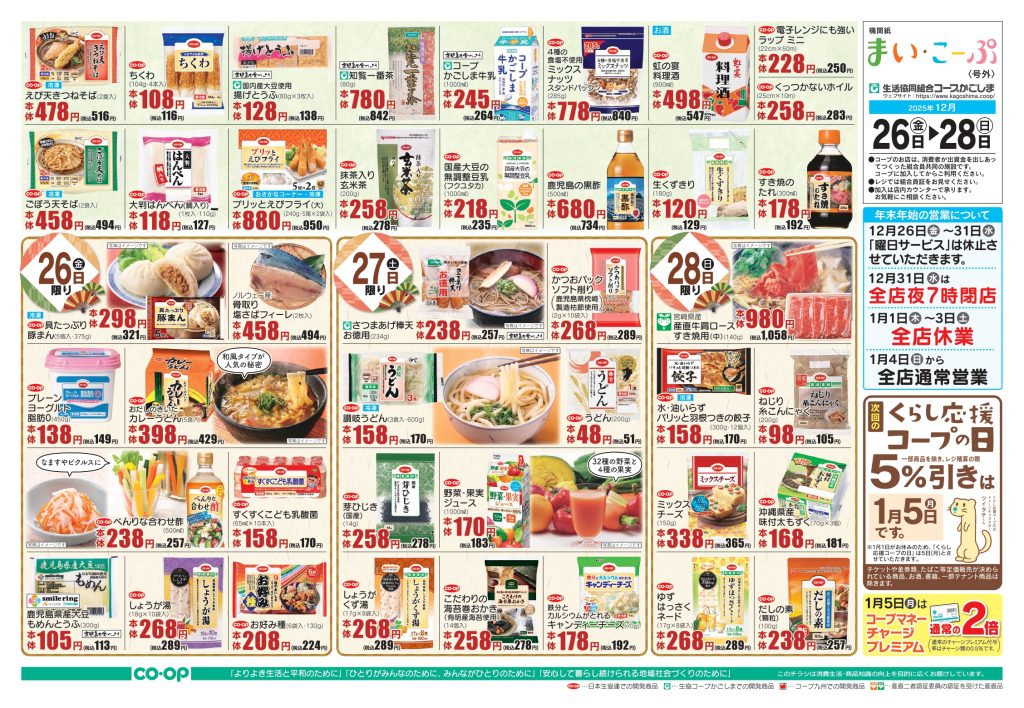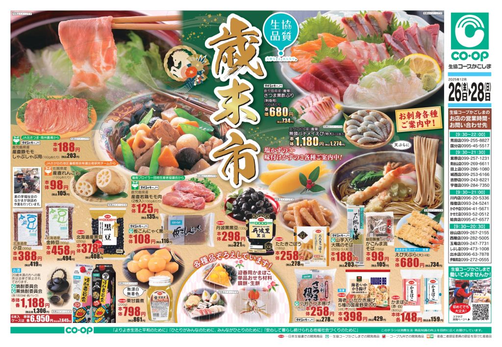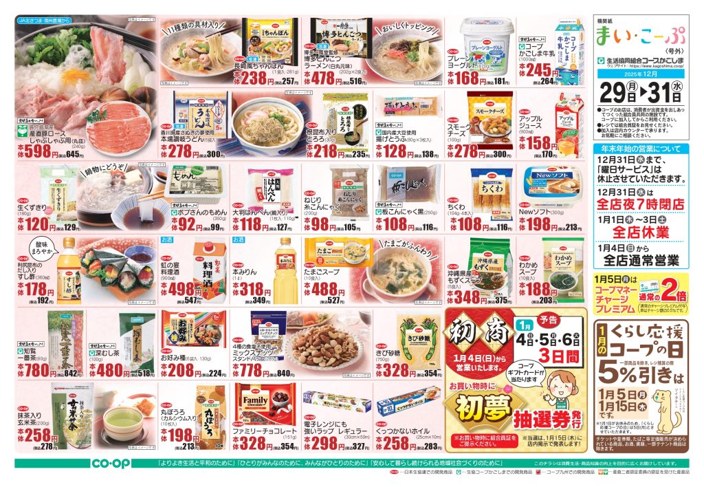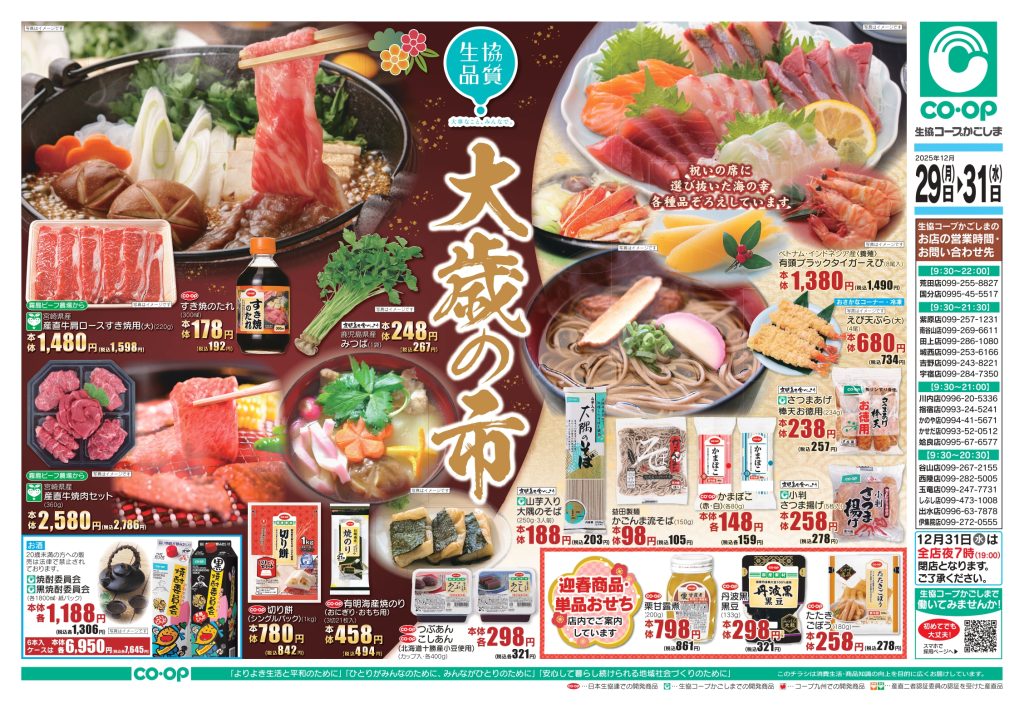 また、コープのお店は12月31日(水)大晦日は午後19:00までの営業となっておりますのでご了承くださいませ。